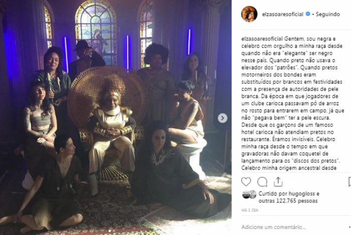Elza fez questão de sentar-se num trono, cercada de mulheres: "Hoje li sobre mais uma 'cutucada' na ferida aberta do Brasil Colônia. Não faço juízo de valor sobre quem errou ou se teve intenção de errar. Faço um alerta! Quer ser elegante? Pense no quanto pode machucar o próximo, sua memória, os flagelos do seu povo, ao escolher um tema para 'enfeitar' um momento feliz da vida", escreveu na legenda.