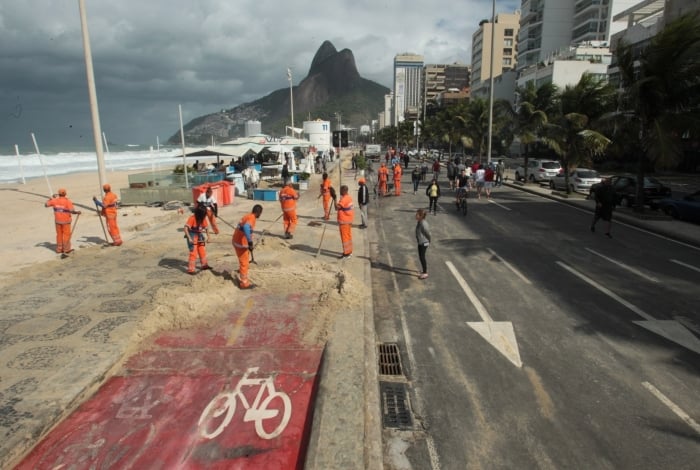 O cenário de destruição foi flagrado por pessoas que passavam pela orla do bairro por volta das 21h. Imagens mostram o as ondas alcançando as escadas na altura do Posto 12 e os móveis do quiosque Azur espalhados pela pista, sentido Ipanema. Garis passam a manhã realizando a limpeza dos estrados na orla.