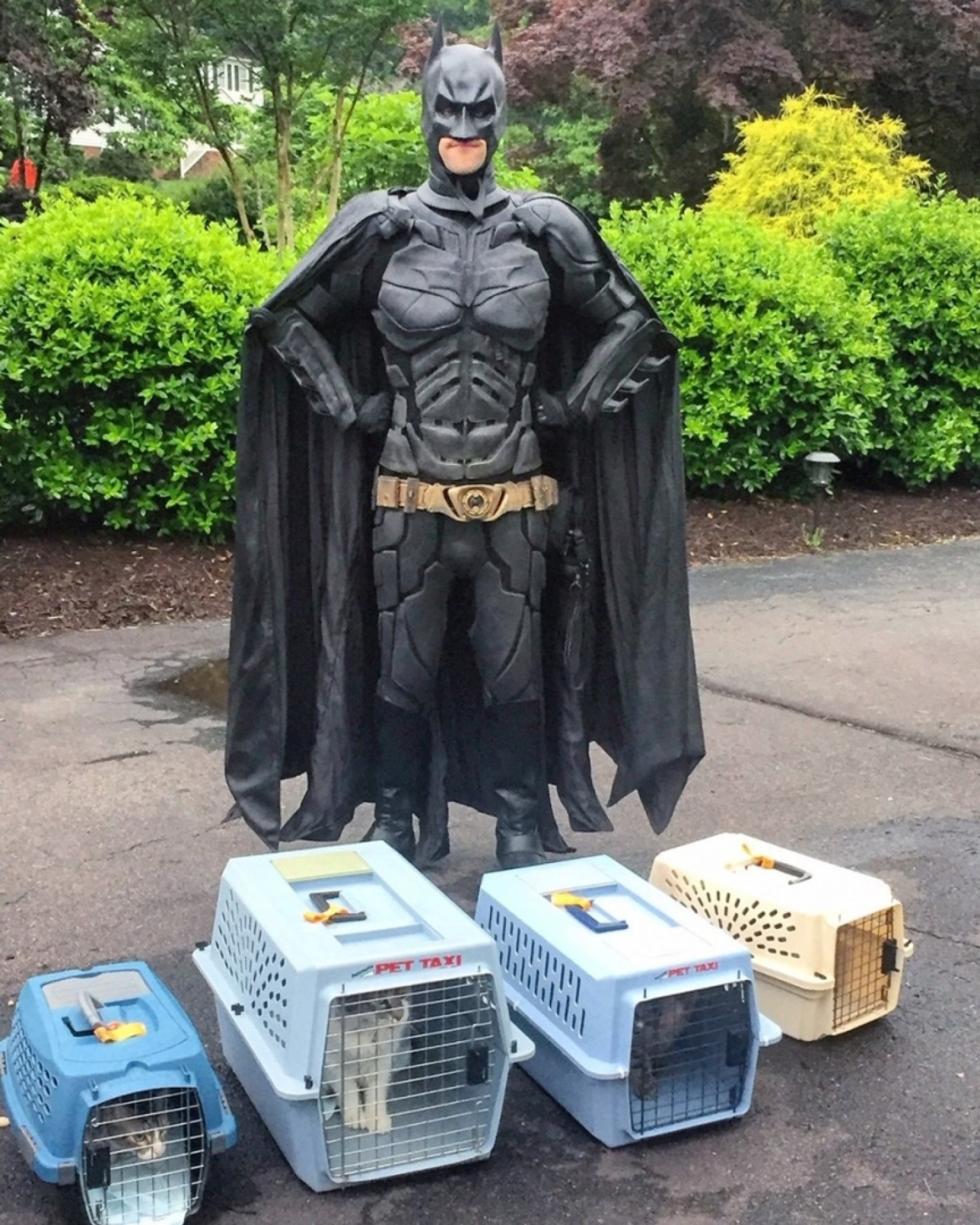 Dizem que nem todo super-herói precisa de capa, mas esse faz questão de usar o traje completo para salvar a vida de vários animaizinhos. O americano Chris Van Dorn, de 27 anos, se veste de Batman e faz o resgate de animais que estão prestes a sofrer a eutanásia. A ideia de Chris é chamar a atenção do público para a adoção.