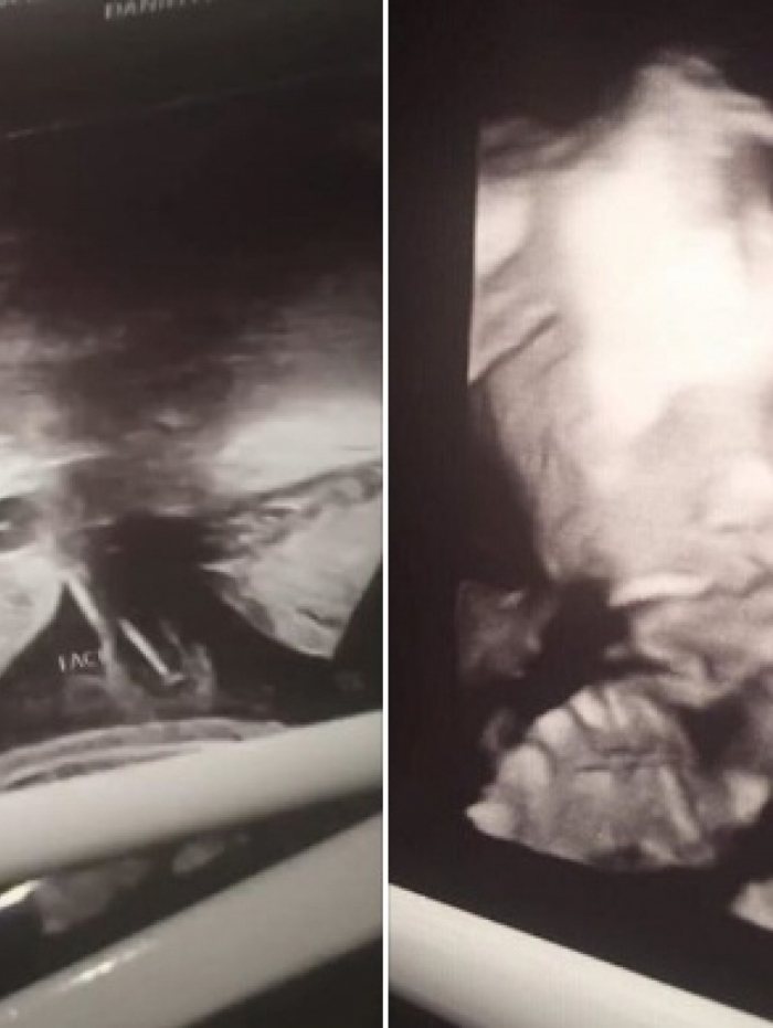 Iyanna disse que quando o médico mudou a posição do aparelho, o bebê voltou a ter uma aparência angelical. "A maioria dos bebês se escondem da câmera, mas olhem para esse demônio. Eu amo tanto esse bebê diabo!", brincou ela na legenda da foto que publicou no Facebook.