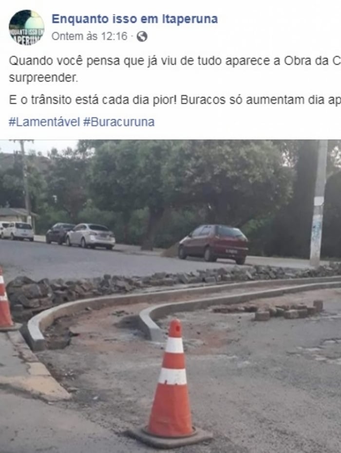 Em uma postagem no Facebook, um grupo de moradores de Itaperuna, interior do Rio de Janeiro, mostrou a indignação causada por uma obra que está sendo feita.