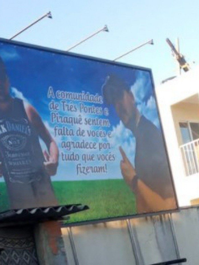 De acordo com foto compartilhada nas redes, a publicidade feita para homenagear os milicianos traz a foto da dupla, com mensagem de agradecimento a dupla por "serviços prestados". "A comunidade de Três Pontes e Piraquê sentem falta de vocês e agradece por tudo que vocês fizeram", diz o outdoor.