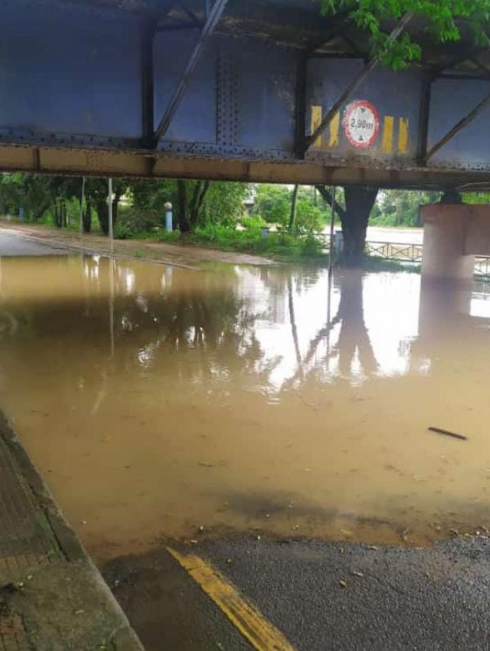 A interdição acontece devido ao nível do Rio Paraíba do Sul, que subiu por conta das chuvas das últimas horas, e invadiu a pista no local.