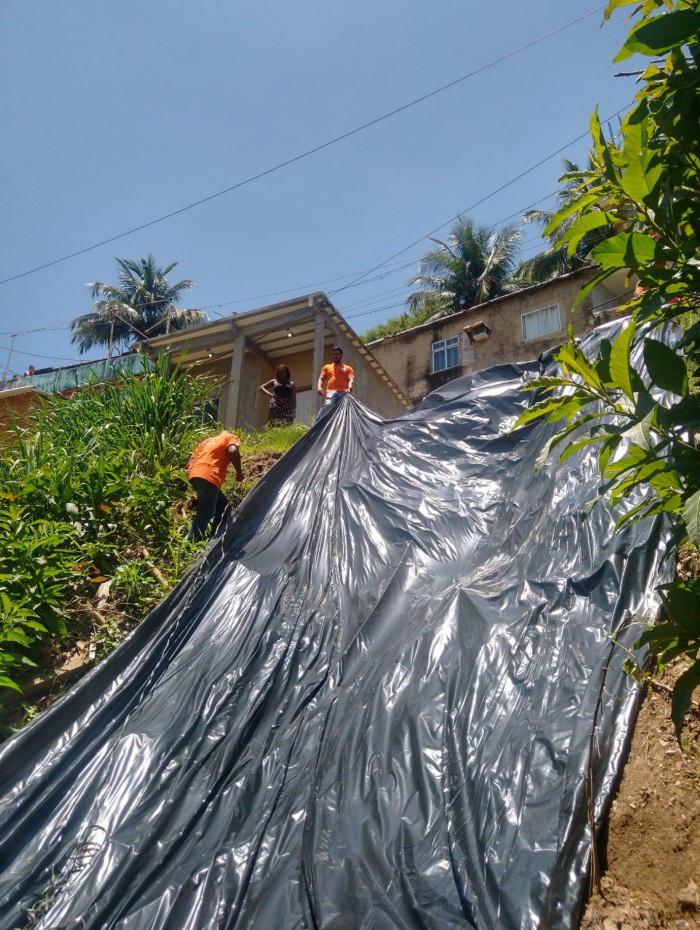 Rio - A Defesa Civil do Rio instalou nesta quarta-feira uma lona plástica de 20 metros de altura em encosta do Morro do Turano, no Rio Comprido, Zona Norte do Rio. A ação tem o objetivo de evitar infiltração no talude e impedir novos deslizamentos de terra, principalmente durante chuvas fortes.