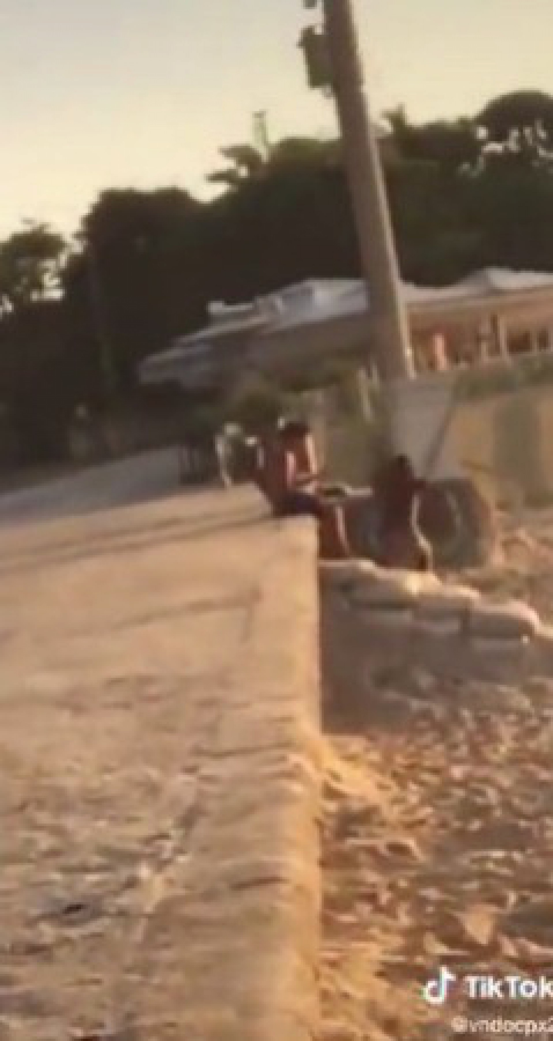 No vídeo, o autor da gravação está afastado da cena do roubo, e filma de longe dois homens sentados na mureta, mexendo no celular. Ele comenta: "Bebel vai levar, olha só o crime que vai a acontecer agora". Nesse momento, o autor do roubo corre em direção às vítimas, puxa o celular da mão de uma delas e corre em direção à areia.