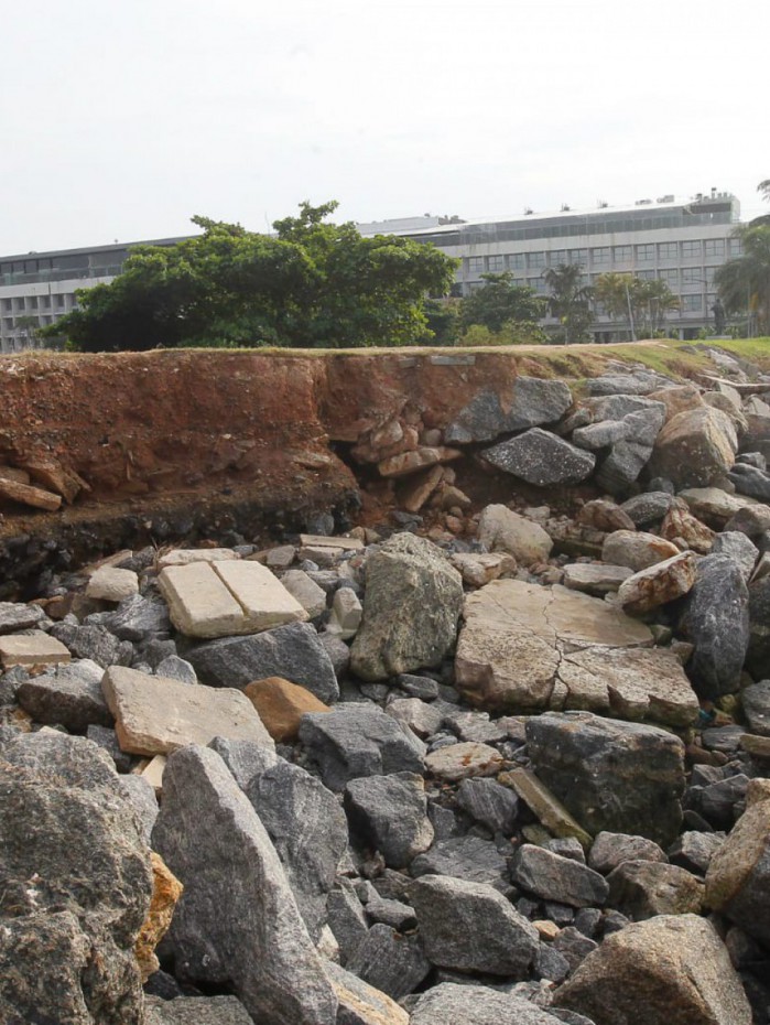 Rio - Um trecho do quebra-mar que fica próximo ao aeroporto Santos Dumont, no Centro do Rio, desmoronou com a força das ondas do mar.