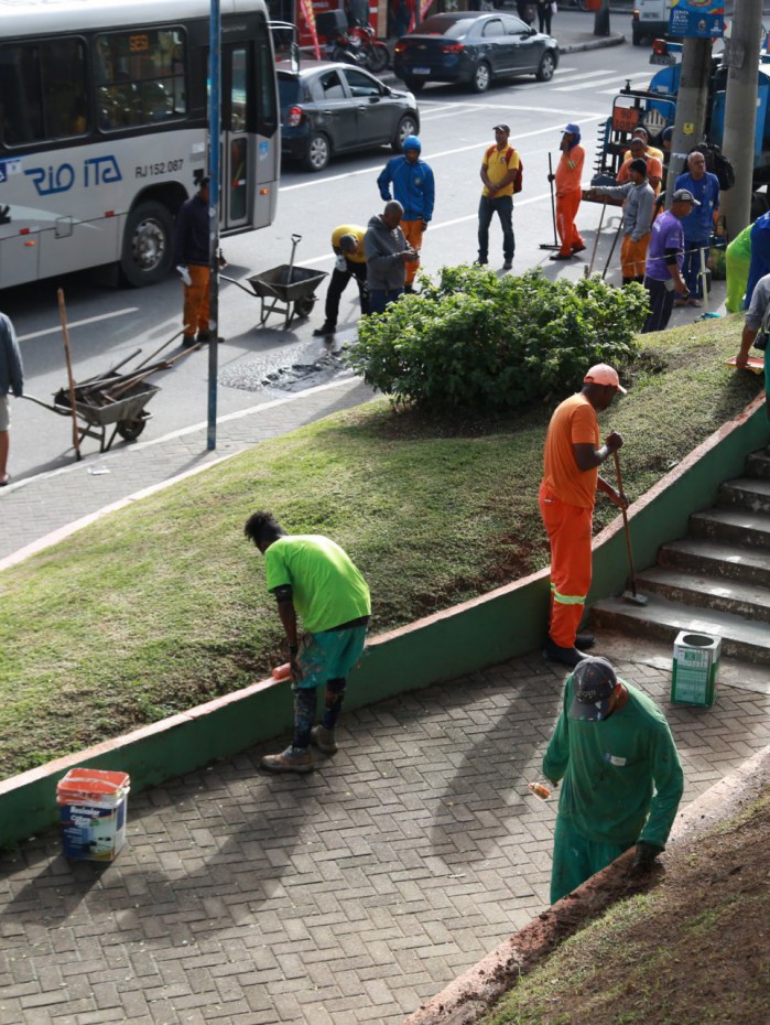 As equipes da Secretaria de Conservação e da Subsecretaria de Parques e Jardins estão trabalhando incessantemente ao longo da semana para deixar tudo preparado para a confecção do tapete de sal, que vai acontecer ao longo de dois quilômetros (da Rua Coronel Moreira César, no bairro Zé Garoto, até a Rua Nilo Peçanha, na altura do Clube Mauá, no Centro). Estão sendo realizados os serviços de limpeza, capinagem nos canteiros, pintura e, com apoio da usina de asfalto, as equipes estão realizando também uma operação tapa-buraco.