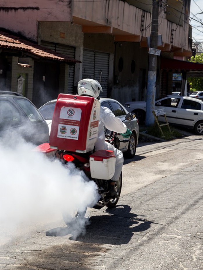 A pulverização do inseticida contra o mosquito Aedes aegypti – transmissor da dengue, zika e chikungunya – continua firme nesta semana pelos bairros de São Gonçalo. A Vigilância em Saúde Ambiental da Secretaria Municipal de Saúde e Defesa Civil divulgou que vai atuar para evitar a proliferação do mosquito. Semanalmente, bairros são visitados pelas equipes das motofogs e fumacês, que pulverizam o inseticida no ar.