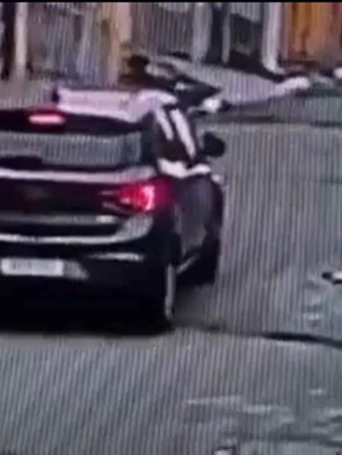Imagens de câmeras de segurança mostram um carro preto estacionado na rua. Logo depois, o motorista avança, passa ao lado do cachorro, dá ré e joga o veículo sobre o animal, que não resistiu aos ferimentos e morreu.