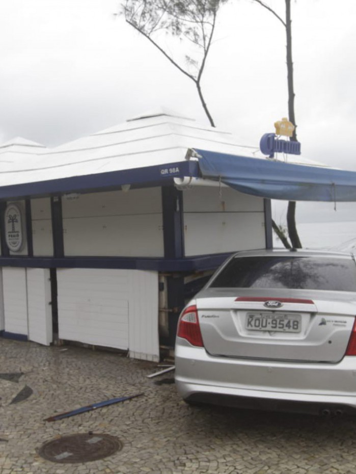 A cena chamou atenção de quem passou pelo calçadão. O estabelecimento ficou com a lateral destruída pelo carro, que também acertou uma lixeira e cadeiras do quiosque. Algumas peças se soltaram do outro automóvel envolvido na batida e foram colocadas próximo ao meio-fio.