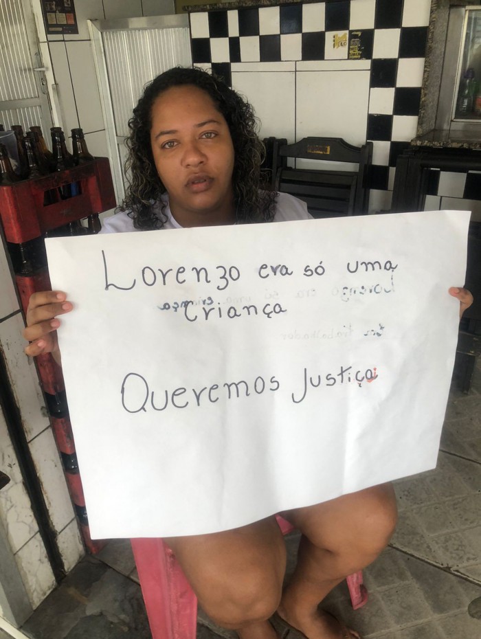 "Quando ele foi baleado, antes de falecer, ele falou para o amigo dele correr para não ser morto e me avisar que ele tinha sido baleado. Mas quando eu cheguei não deu mais tempo. E eles não foram socorrer meu filho, só apareceram lá quando teve manifestação. Eu estava com meu filho de três anos quando soube e ele acabou vendo (...) agora ele fala: Mãe, a polícia matou o Lorenzo", complementou.