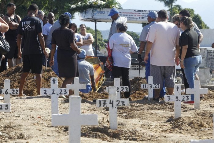 Rio - O corpo de Glória Maria Esteves Cherfan Cristo, de 36 anos, foi sepultado neste sábado (20), no Cemitério de Irajá, na Zona Norte do Rio. Na última quinta-feira (18), a mulher foi morta a tiros durante um tiroteio entre policiais e criminosos na comunidade do Amarelinho, em Acari.
