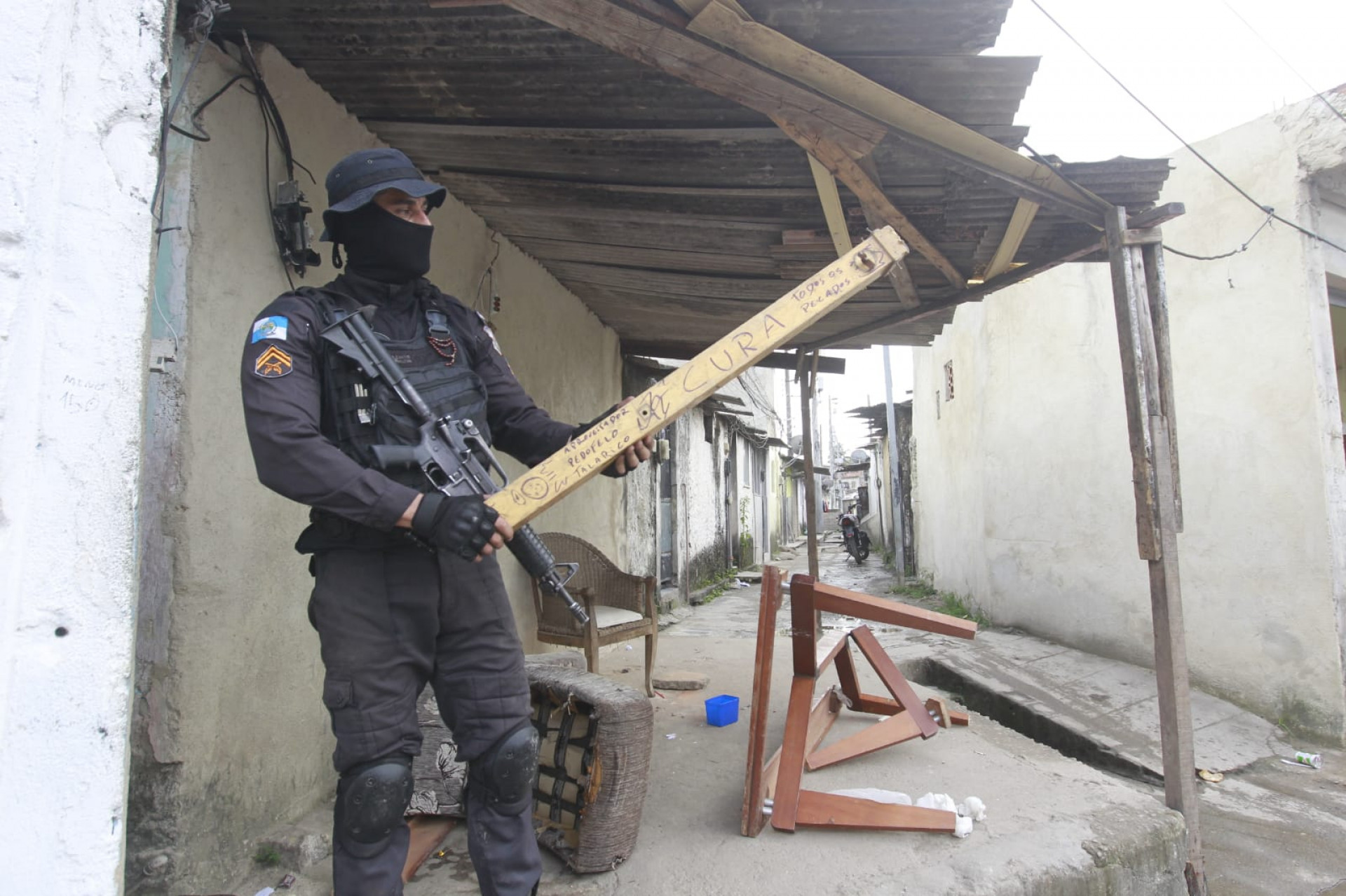 Durante a retirada das barricadas, policiais encontraram um pedaço de madeira utilizado por traficantes locais para "dar um corretivo" após o castigo ser decidido pelo tribunal do tráfico, No pedaço de pau, os criminosos escreveram "cura", "aproveitador", "pedófilo" e "talarico".