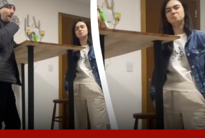 Uma mulher identificada como Bruna Fernanda viralizou nas redes sociais nesta terça-feira (16), após compartilhar vídeo da montagem de uma mesa comprada online. O que causou estranheza foi o enorme tamanho do móvel, que chegava quase à altura do pescoço de Bruna. A jovem admitiu não ter conferido as dimensões do produto. Nos comentários, internautas sugeriram que a instalação teria sido feita de maneira incorreta e que a mesa poderia ser do tipo suspensa, ou seja, presa ao teto ou à parede, o que explicaria a altura inusitada. ’Moça, tem que colocar no teto’, orientou um seguidor. ‘Gente, é porque essa mesa foi feita pra você jantar nas alturas’, brincou outro. Assista!