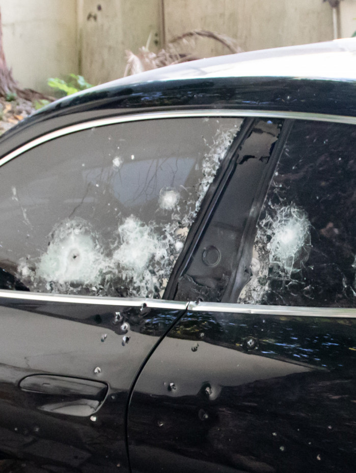 O carro utilizado no crime foi encontrado abandonado na Rua Mario Larrúbia, em Guaratiba, ainda na Zona Oeste, com diversas marcas de tiros, inclusive nos pneus. O veículo tem furos nos vidros, uma espécie de seteiras, feitas para a passagem do armamento pesado usado no ataque.