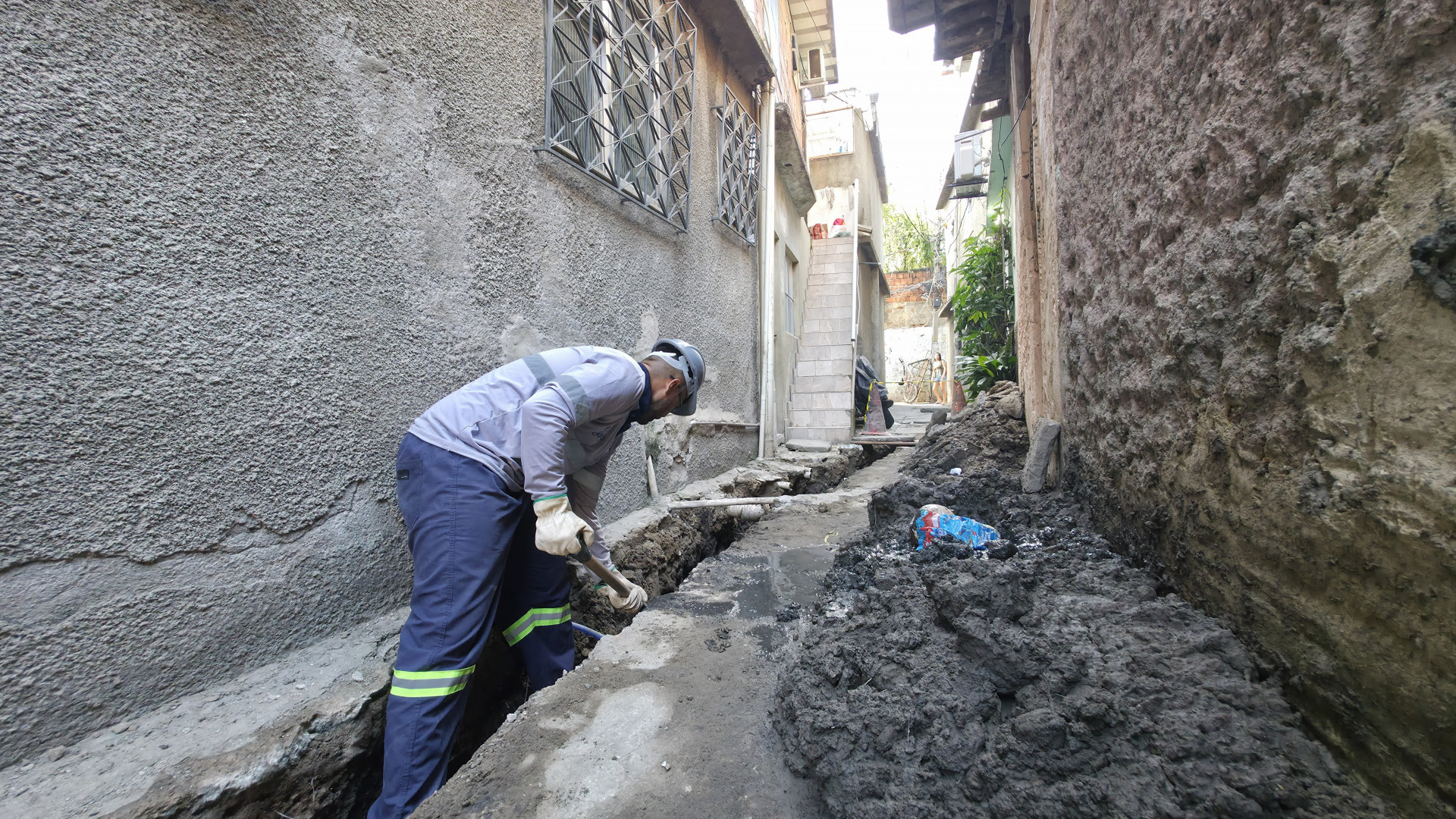 Esgoto a céu aberto e água contaminada se misturam à que chega à torneira por redes precárias, feitas no improviso — aspectos de uma realidade que hoje Jonas trabalha para mudar. Ele é um dos mais de 160 contratados pela Águas do Rio, empresa do grupo Aegea, para instalar redes de água e de esgoto em todo o conjunto de 16 favelas que formam a Maré. E o fato de a mão de obra ser local faz toda a diferença.