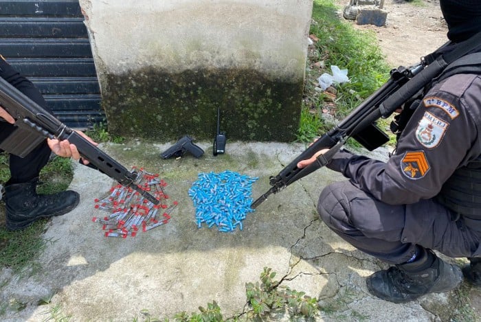 Durante a abordagem e revista, foi encontrado uma pistola, um revólver e um simulacro de fuzil. Além disso, foi constatado que o veículo deles estava com a placa adulterada.