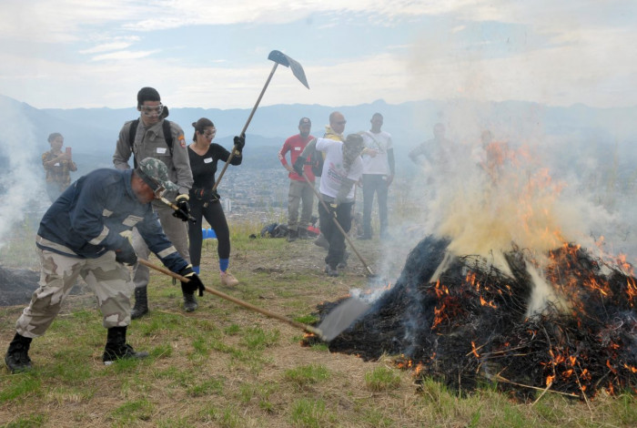Voluntários da Brigada de Prevenção e Combate aos incêndios florestais de Nova Iguaçu passaram por um treinamento na Serra do Vulcão, no fim de semana. O grupo exercitou técnicas de atuação da Guarda Ambiental em ações de combate, como o movimento do fogo e do vento, como atuar com os equipamentos, como as bombas costais e abafadores. O grupo ainda passou por um simulado de combate real. Este ano, a cidade já registrou quatro ocorrências de queimadas.