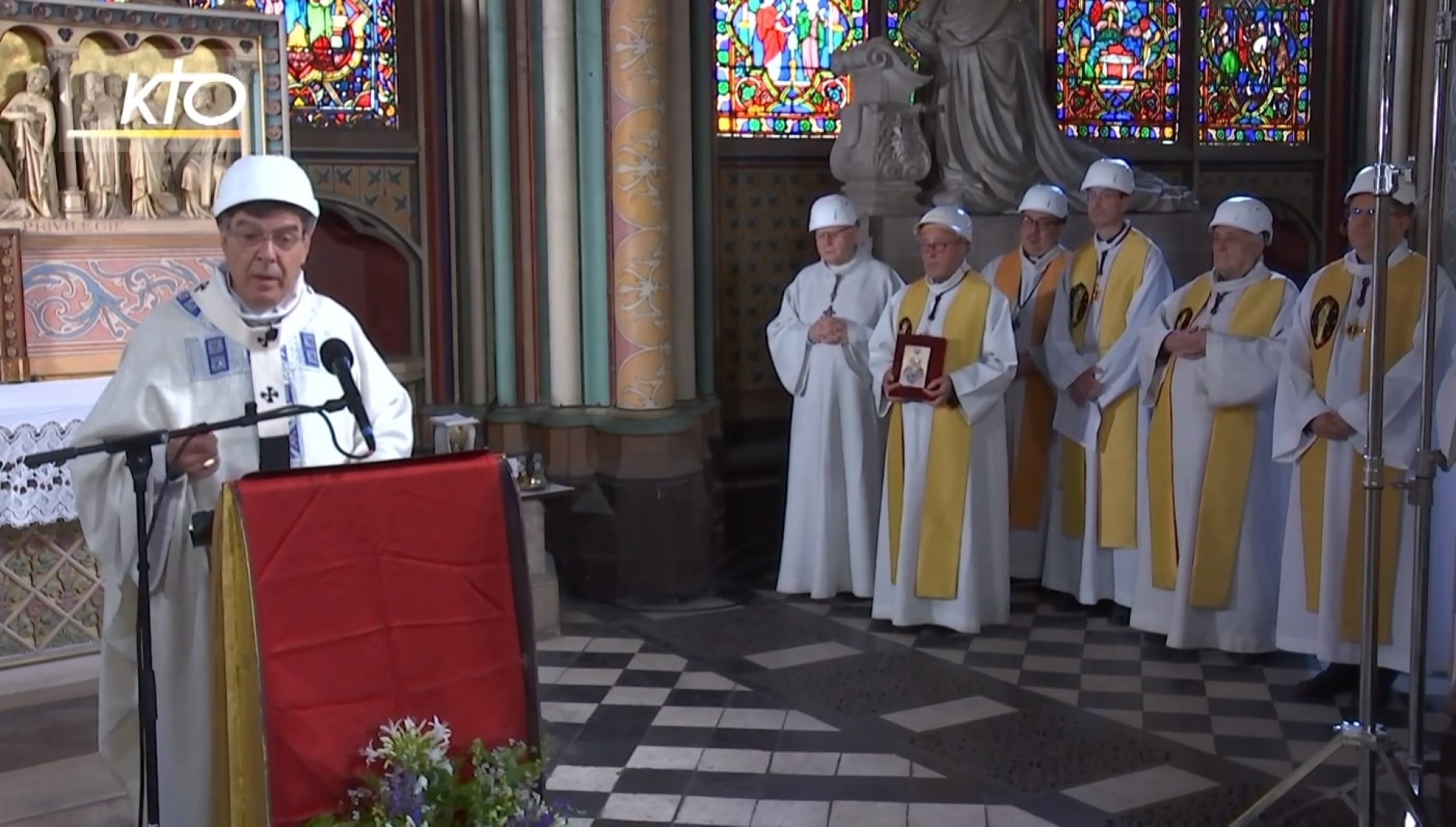 Padres participaram da primeira missa ontem depois do incêndio que atingiu a Catedral de Notre-Dame, em Paris, em abril. Por questões de segurança, os religiosos tiveram que usar capacetes de proteção, já que ainda há entulhos dos escombros no local. O arcebispo Michel Aupetit, que celebrou a missa, só retirou o capacete durante a consagração da hóstia e do vinho.