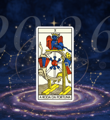 A carta do Tarot de 2026 é A Roda da Fortuna, Arcano 10 que simboliza os ciclos da vida, mudanças repentinas e aceleração de acontecimentos. Este será um ano de surpresas e viradas i...