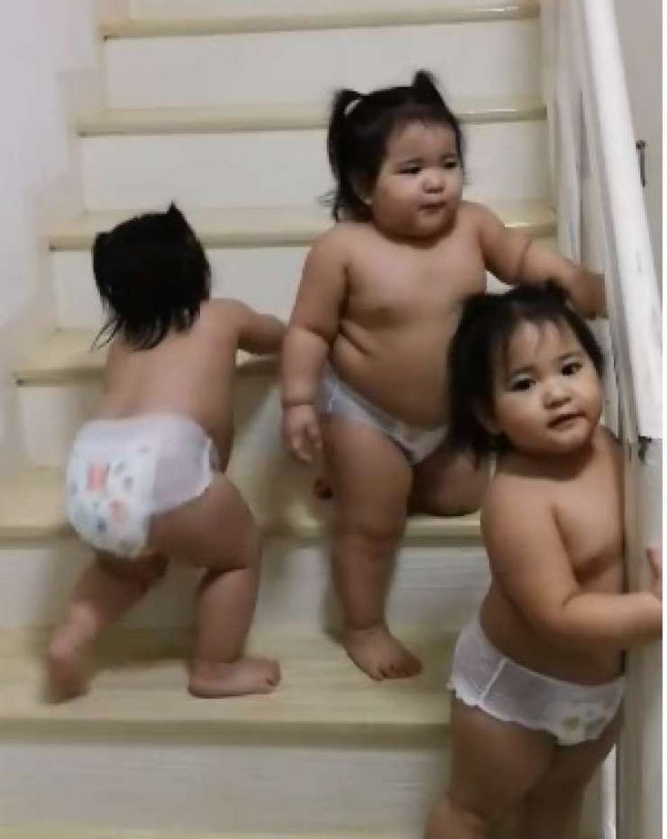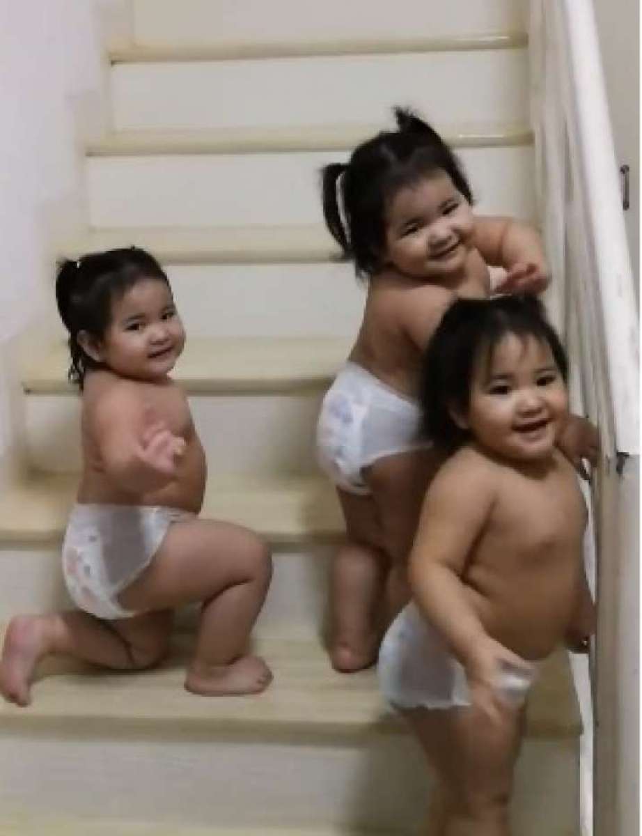 AS TRIGÊMEAS fofuchinhas ao lado conquistaram corações dos internautas. As meninas, que foram filmadas subindo a escada usando apenas fraldas, dão tchauzinho para a câmera. O vídeo já ultrapassou a marca de 25,3 milhões de visualizações em apenas 11 dias. Além disso, a publicação recebeu mais de 125 mil reações, entre risadas, corações e curtidas, e quase 40 mil comentários.
