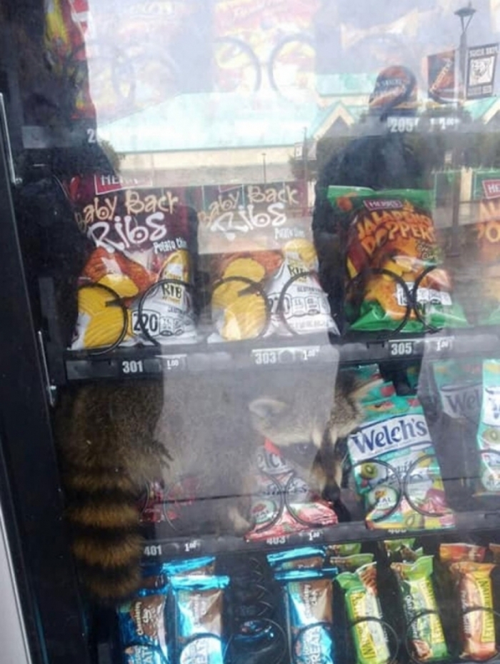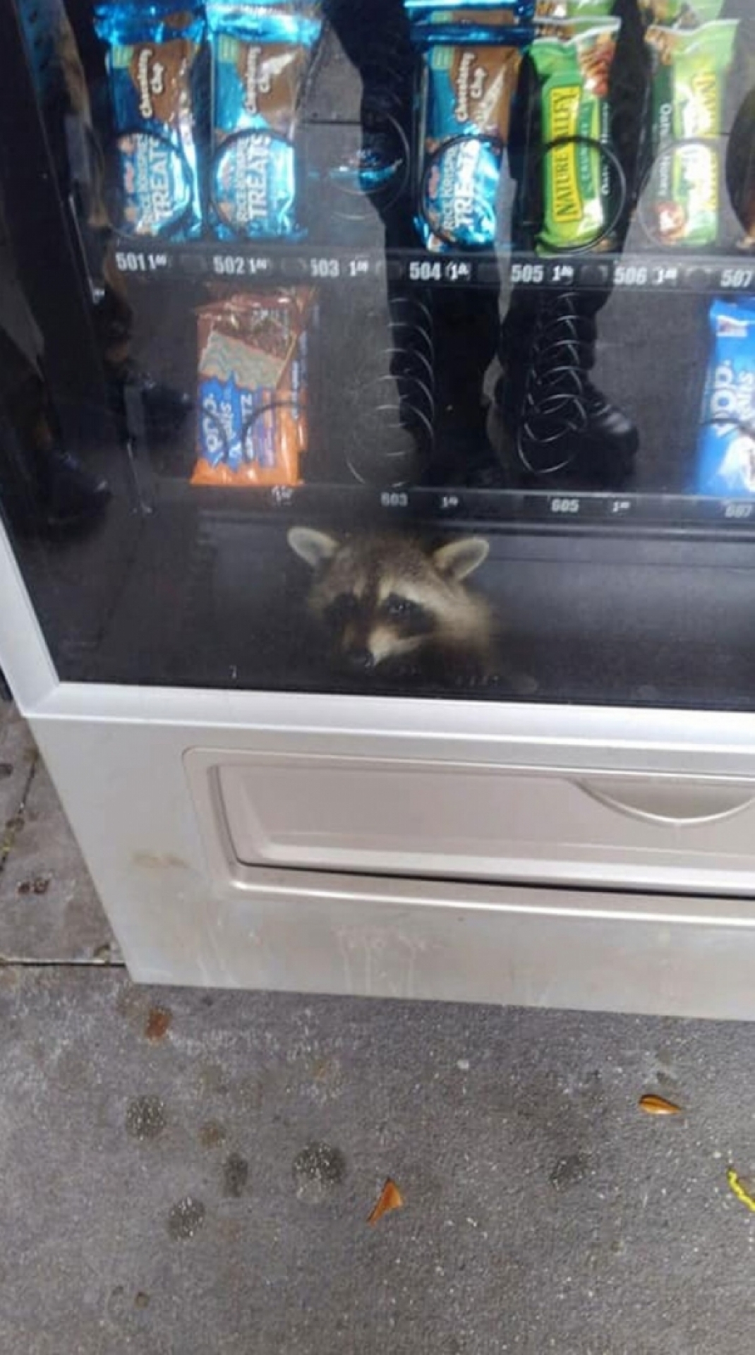 Na hora do recreio, os alunos de uma escola em Deltona, na Flórida, nos Estados Unidos, foram surpreendidos com um episódio pra lá de inusitado. A polícia de controle animal local precisou ser acionada para retirar um guaxinim que ficou preso dentro de uma máquina de venda de lanches.