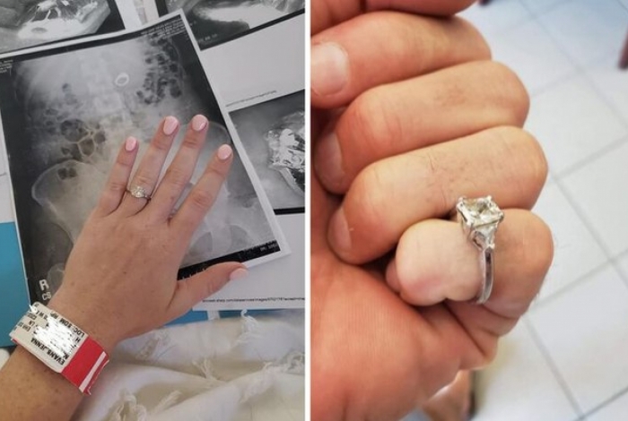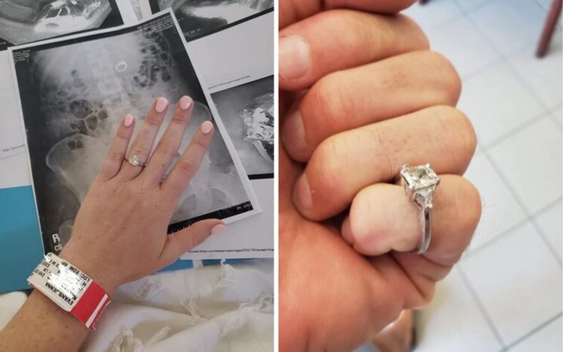 Sem saber o que fazer, a dupla partiu para o hospital. "Lutei para explicar o motivo de estar lá, porque estava rindo/chorando muito. O médico pediu um raio-X e parecia bastante chocado quando voltou e me mostrou que, com certeza, o anel estava no meu estômago", relata a mulher.