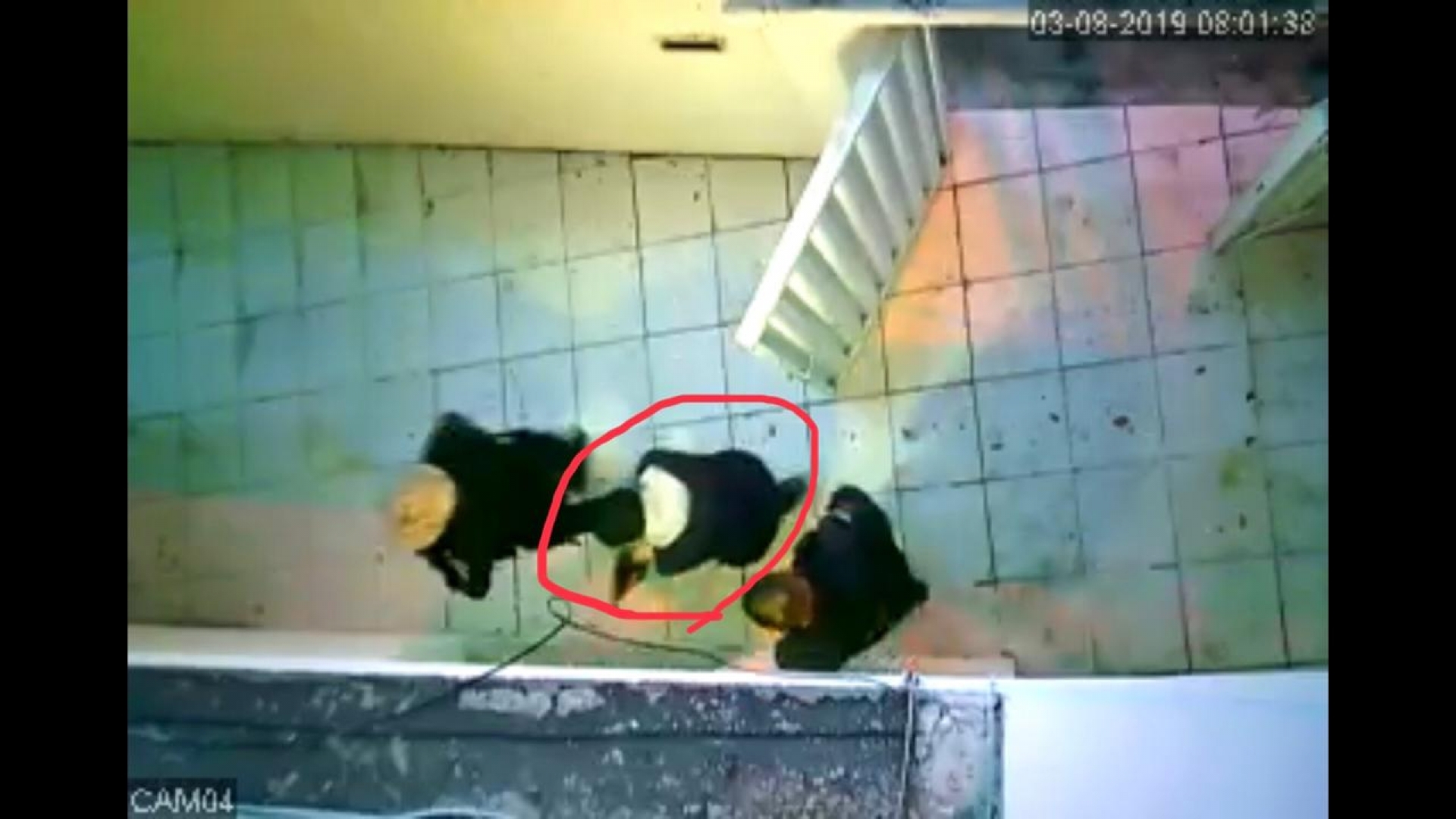 Uma câmera de segurança registra policiais do GAT de São Gonçalo com o traficante 'Jogador' na Comunidade da Coreia no sábado, dia 3 de agosto. O traficante, em um momento de descuido, retira sua touca ninja e olha em direção à câmera.