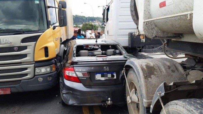 Rio - Um adolescente de 14 anos pegou o carro de um vizinho, fugiu de forma desgovernada e provocou um acidente com duas carretas, na tarde deste sábado (17), em Volta Redonda, no Sul Fluminense. Dentro do automóvel, além do adolescente, estava um menino de 5 anos, filho do dono do veículo. Os dois foram retirados sem ferimentos.
