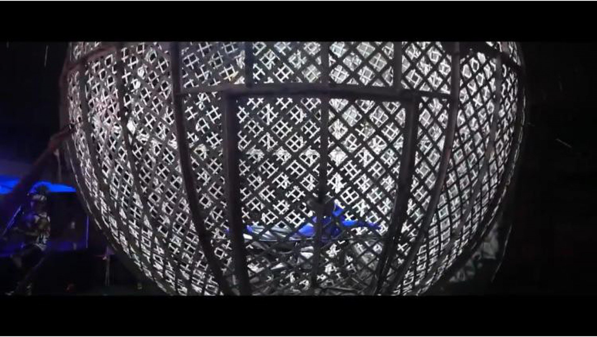 Uma artista circense se apresentou para o público no Baile da Disney e, ao fundo, é possível ver o globo da morte - Reprodução internet