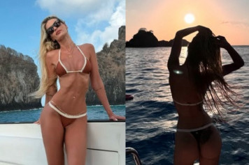 GATA De biquíni fio-dental, Yasmin Brunet esbanja boa forma Ex-BBB curtiu um passeio de barco em Fernando de Noronha