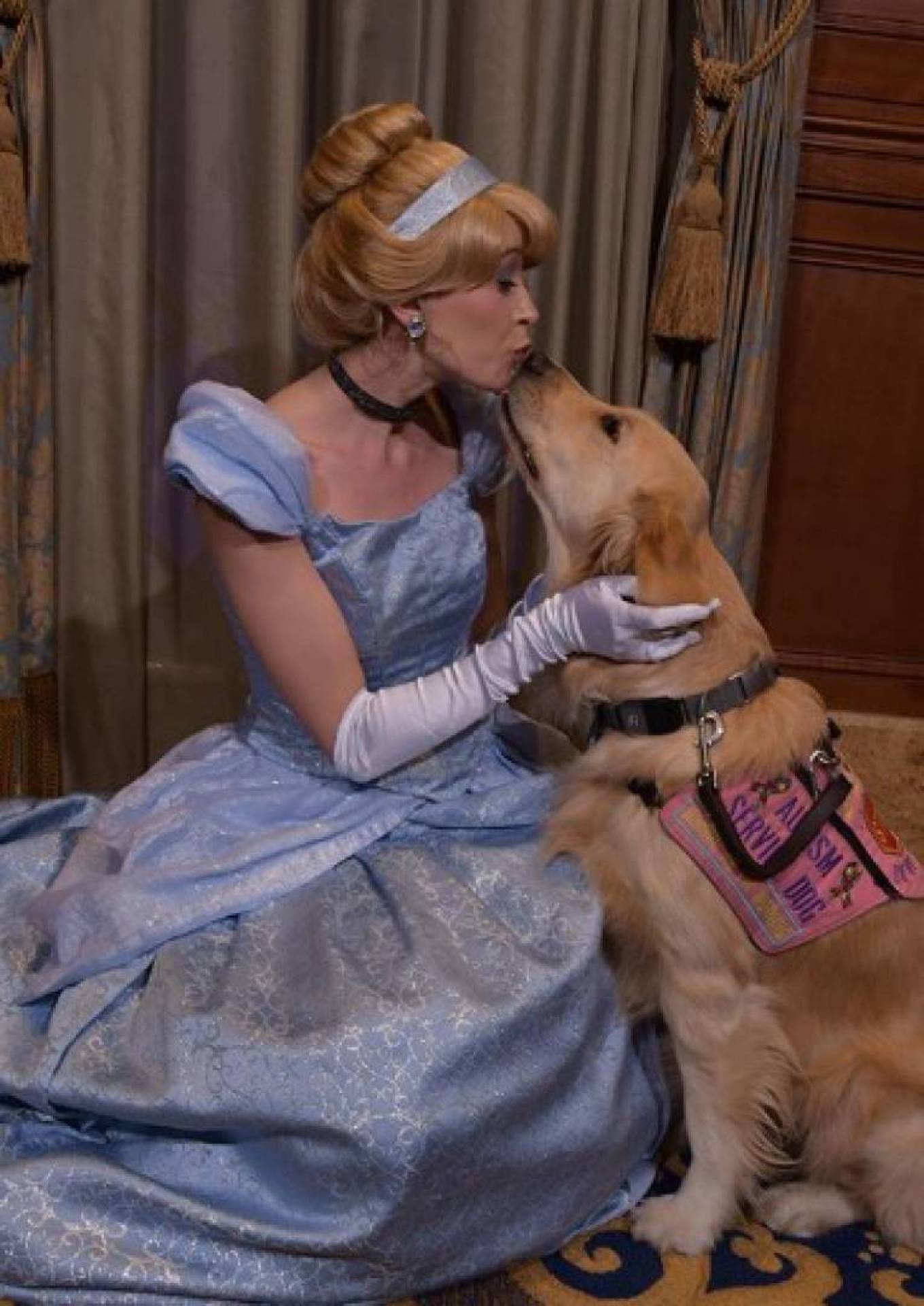 Nala, na verdade, é uma cachorrinha de apoio, isso significa que ela dá suporte à dona, que tem autismo. Além de ser o braço direito de Megan, Nala ainda posa e brinca com os personagens da Disney nos passeios que faz com a dona para lá.